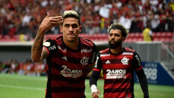 Pouco tempo depois, aos doze minutos, Pedro fez o segundo gol. Na ocasião, o Flamengo fez triangulação entre Rodinei e Everton Ribeiro na direita. Em seguida, o camisa 7 carregou até a entrada da área, cruzou na medida e o jovem atacante cabeceou novamente para ampliar o placar.