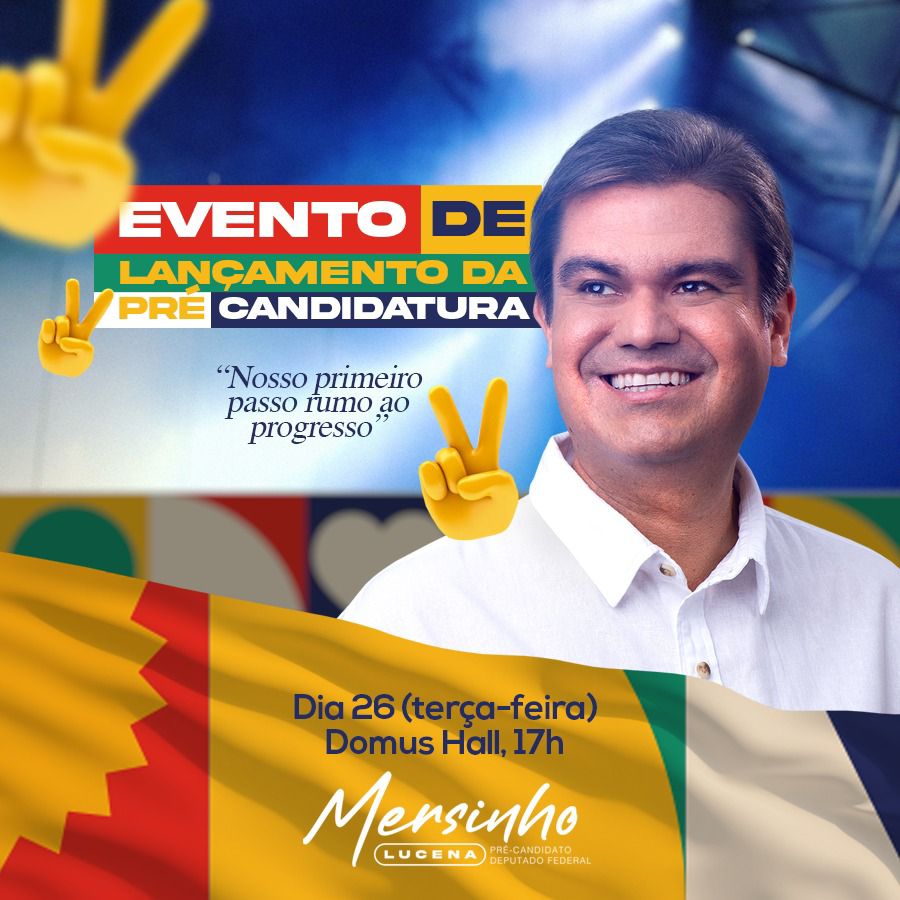 O pré-candidato a deputado federal, Mersinho Lucena, terá sua pré-candidatura oficializada na próxima terça-feira (26), durante evento que vai acontecer na Domus Hall, em João Pessoa. O encontro está marcado às 17h.