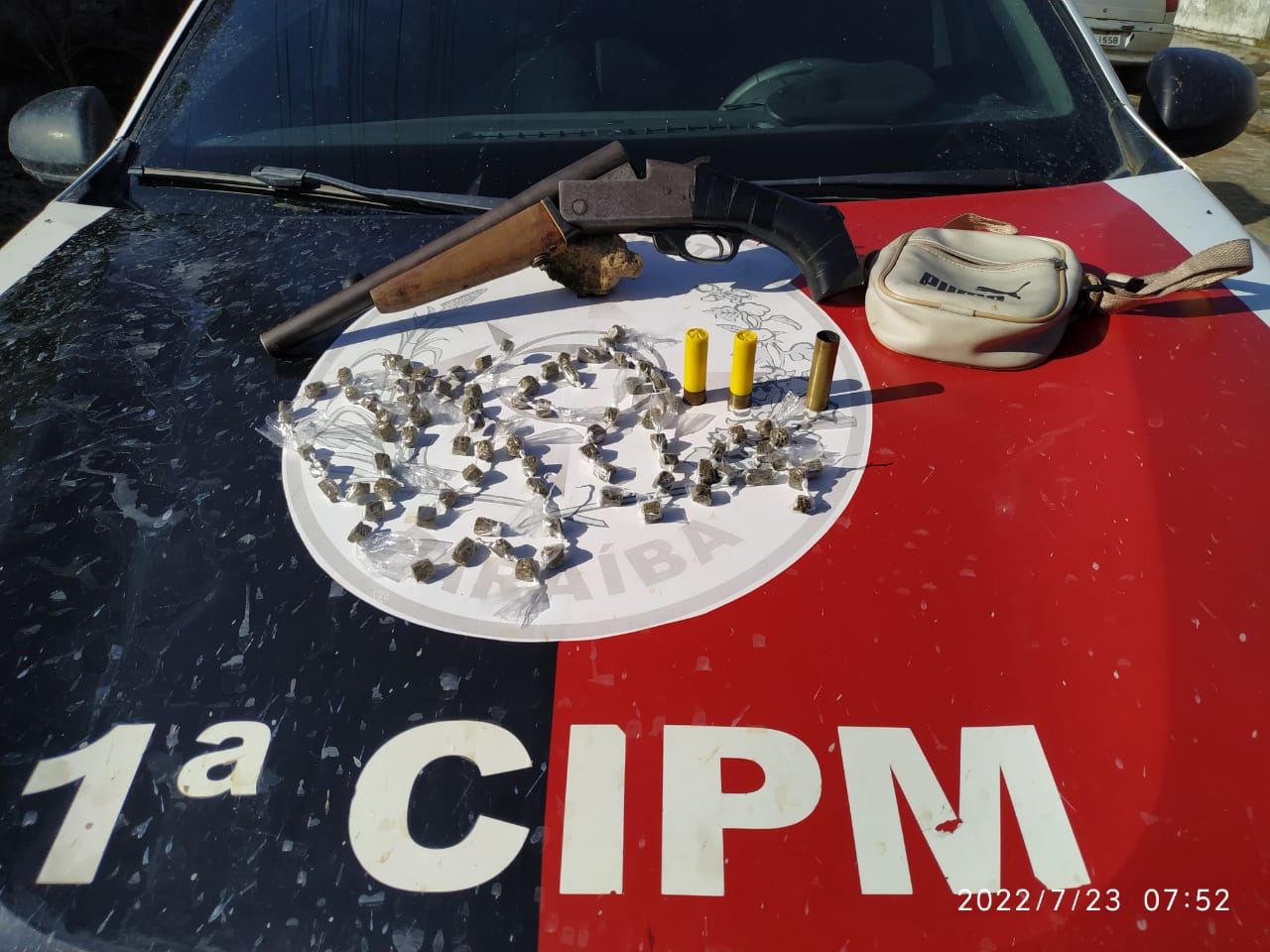 A situação aconteceu, quando militares do pelotão de Pedras de Fogo receberam várias denúncias sobre indivíduos armados pichando muros com nome de facção no sítio Camaçari. Com isso, equipes de polícia preventiva, sob a coordenação do Comandante do pelotão, foram até o local e conseguiram prender um suspeito com uma espingarda, várias munições e 84 porções de uma substância análoga a maconha.