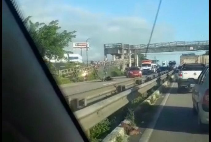 Um acidente de trânsito deixou duas pessoas feridas e uma moto incendiada, em Bayeux, na Grande João Pessoa. O caso aconteceu na BR-230, durante a manhã desta segunda-feira (25). A ocorrência envolveu duas motos e um carro.