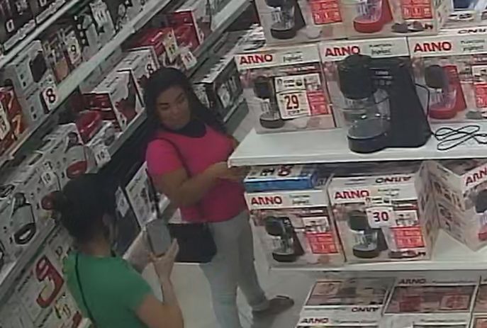 No vídeo é possível ver que uma das mulheres dá as costas para câmera e se abaixa. Ela pega uma sacola que havia deixado abaixo da prateleira, em seguida começa a colocar furadeiras dentro da embalagem. A outra mulher chega elas trocam algumas palavras e em seguida vão embora.