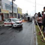 De acordo com informações do Sargento Silvio, da Policia Militar, o casal estava na parada de ônibus, quando foi atingido pelo veiculo Logan de placas AZC-5724, que capotou.