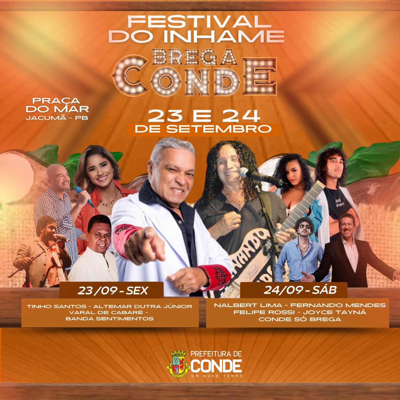 As atrações confirmadas para o Festival do Inhame e Brega Conde são: Fernando Mendes, Tinho Santos, Varal de Cabaré, Altemar Dutra Junior, Banda Sentimentos, Nalbert Lima, Felipe Rossi, Conde Só Brega e Joyce Tayná, que se apresentarão nas duas noites de shows que vão acontecer na Praça do Mar. Na estrutura do evento, espaço para gastronomia e informações sobre a cultura da produção do inhame no município de Conde.