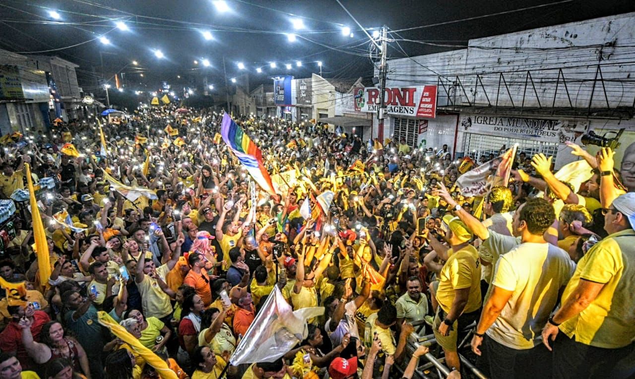 O governador e candidato à reeleição João Azevedo (PSB) foi recebido por uma multidão que se espalhou pelas principais ruas de Sousa, na noite deste domingo (25), no tradicional “Fofachão”. Os sousenses foram às ruas, caminharam ao lado do prefeito Tyrone, de João, Lucas e Pollyana, pularam, abraçaram e num só sorriso deram uma demonstração de que estão fechados com João Azevêdo para o Governo e Pollyanna Dutra para o Senado Federal.
