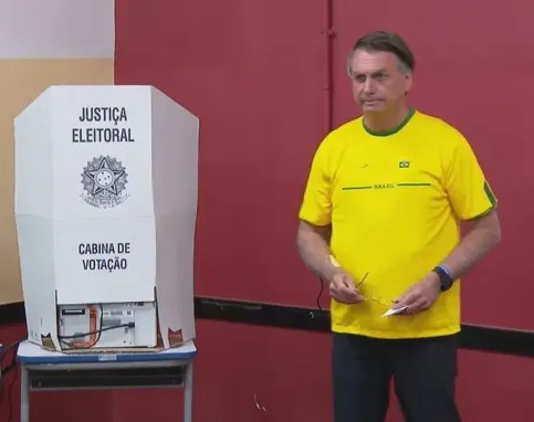 Bolsonaro permaneceu pouco mais de 20 segundos para votar na cabine eleitoral. Ele cumprimentou os mesários e deixou a seção eleitoral.