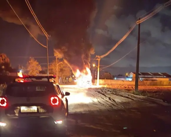 Um grupo armado ateou fogo em um ônibus de transporte urbano após obrigar o motorista a abandonar o veículo, na noite dessa terça-feira (4), no bairro Colinas do Sul, em João Pessoa.