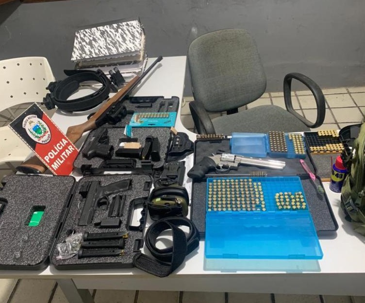 A Polícia Militar e a Polícia Civil, em operação policial conjunta, apreenderam grande quantidade de armas e munições na cidade de São Bento, no interior da Paraíba, na noite desta quarta-feira (16).