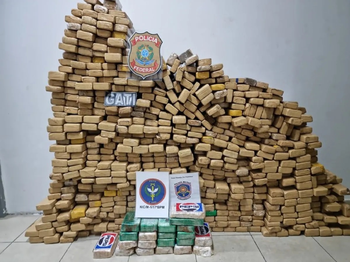 Após abordagem de um caminhão de mudanças, foram encontrados, aproximadamente, 492 kg de maconha e 21,5 kg de crack, além da droga também foram apreendidos três aparelhos celulares