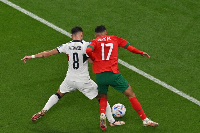 Ao final do primeiro tempo, Bruno Fernandes ainda acertou o travessão de Bono, mas o empate não veio. E quem imagina um Marrocos acanhado, viu a equipe africana chutar mais contra a meta portuguesa do que o contrário.