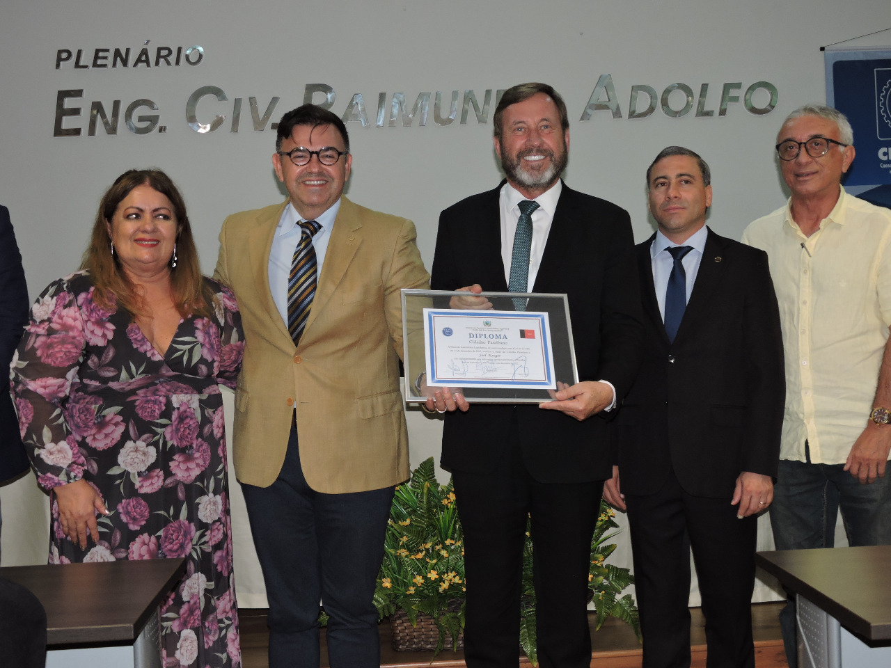 A Assembleia Legislativa da Paraíba (ALPB) realizou sessão solene, na tarde desta segunda-feira (12), para entregar o título de cidadão paraibano ao engenheiro civil paranaense Joel Krüger, pelos relevantes serviços prestados ao estado; além de celebrar o Dia do Engenheiro e os 20 anos do Código de Ética Profissional. O evento, proposto pelo deputado Raniery Paulino, aconteceu no auditório do Conselho Regional de Engenharia e Agronomia da Paraíba (Crea/PB), em João Pessoa.