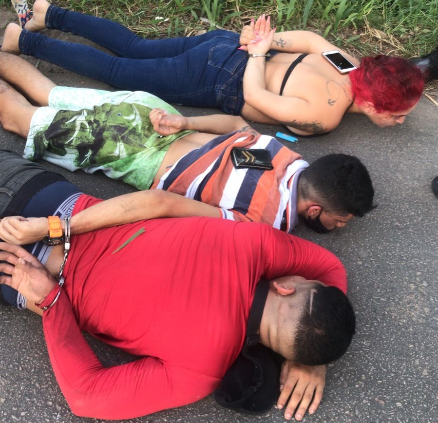 Com a informação do assalto e as características do veículo, os policiais montaram um cerco e conseguiram capturar, na BR 230, sentido João Pessoa/ Bayeux, uma mulher, um homem e um adolescente. eles estavam em um veículo vermelho. Com eles a polícia encontrou uma arma de fogo e o material roubado.