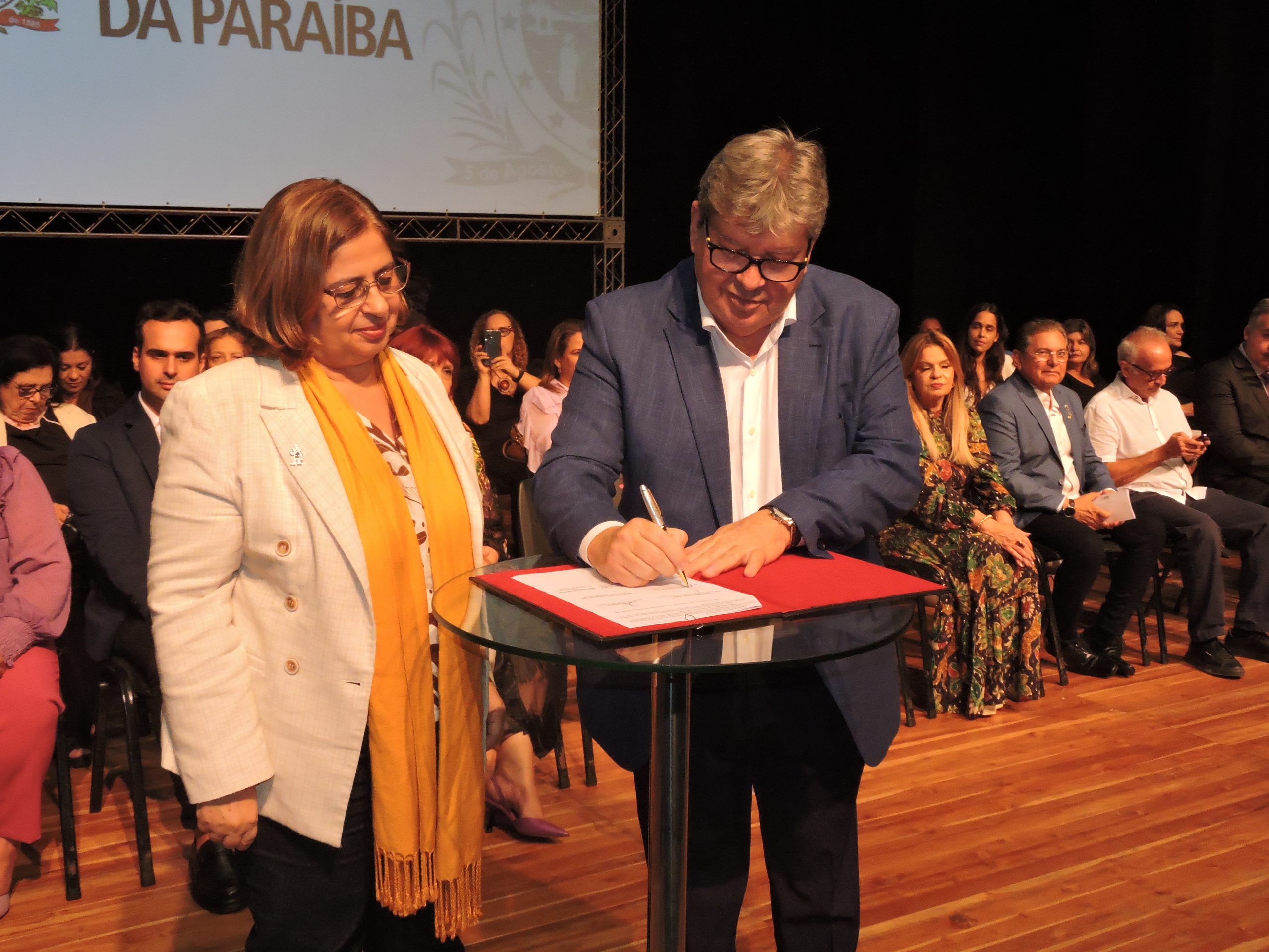 O governador João Azêvedo assinou, nesta quarta-feira (5), o termo de adesão ao acordo de cooperação técnica com o Ministério das Mulheres para construção de primeira Casa da Mulher Brasileira do Sertão, na cidade de Patos, ao lado da ministra da Mulher, Cida Gonçalves, e do prefeito Nabor Wanderley, durante solenidade no Teatro Paulo Pontes, Espaço Cultural, em João Pessoa.