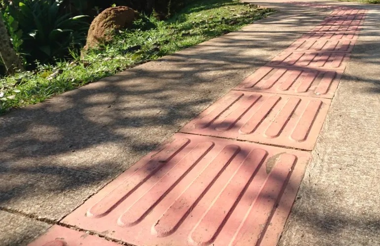 O piso tátil deve atender as especificações do órgão nacional de controle técnico, a Associação Brasileira de Normas Técnicas (ABNT).