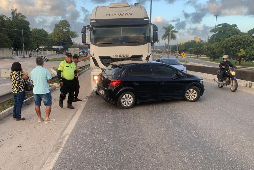 O fato ocorreu no sentido João Pessoa-Cabedelo, pouco depois do Centro Administrativo Municipal (CAM). Um veículo de passeio e uma carreta estão envolvidos no acidente.