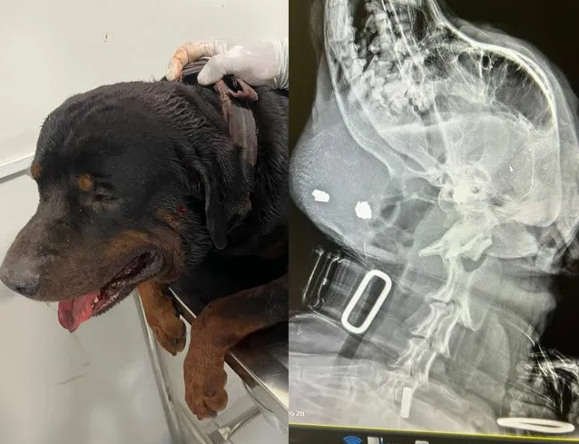 Um cachorro da raça rottweiller invadiu uma creche após ser atingido por dois tiros na cabeça, nesta quarta-feira (27), no bairro Colinas do Sul, em João Pessoa. A equipe de zoonoses foi acionada e levou o animal para a Clínica Pet Municipal, onde ele foi medicado e fez um raio-x que identificou os fragmentos das balas.
