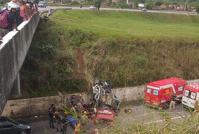 Segundo informações da Polícia Rodoviária Federal (PRF), o motorista do carro perdeu o controle, saiu da pista e caiu do viaduto. Uma bombeira militar que passava pelo local no momento do acidente prestou os primeiros socorros e acionou uma equipe para atender às vítimas, de acordo com o Corpo de Bombeiros.