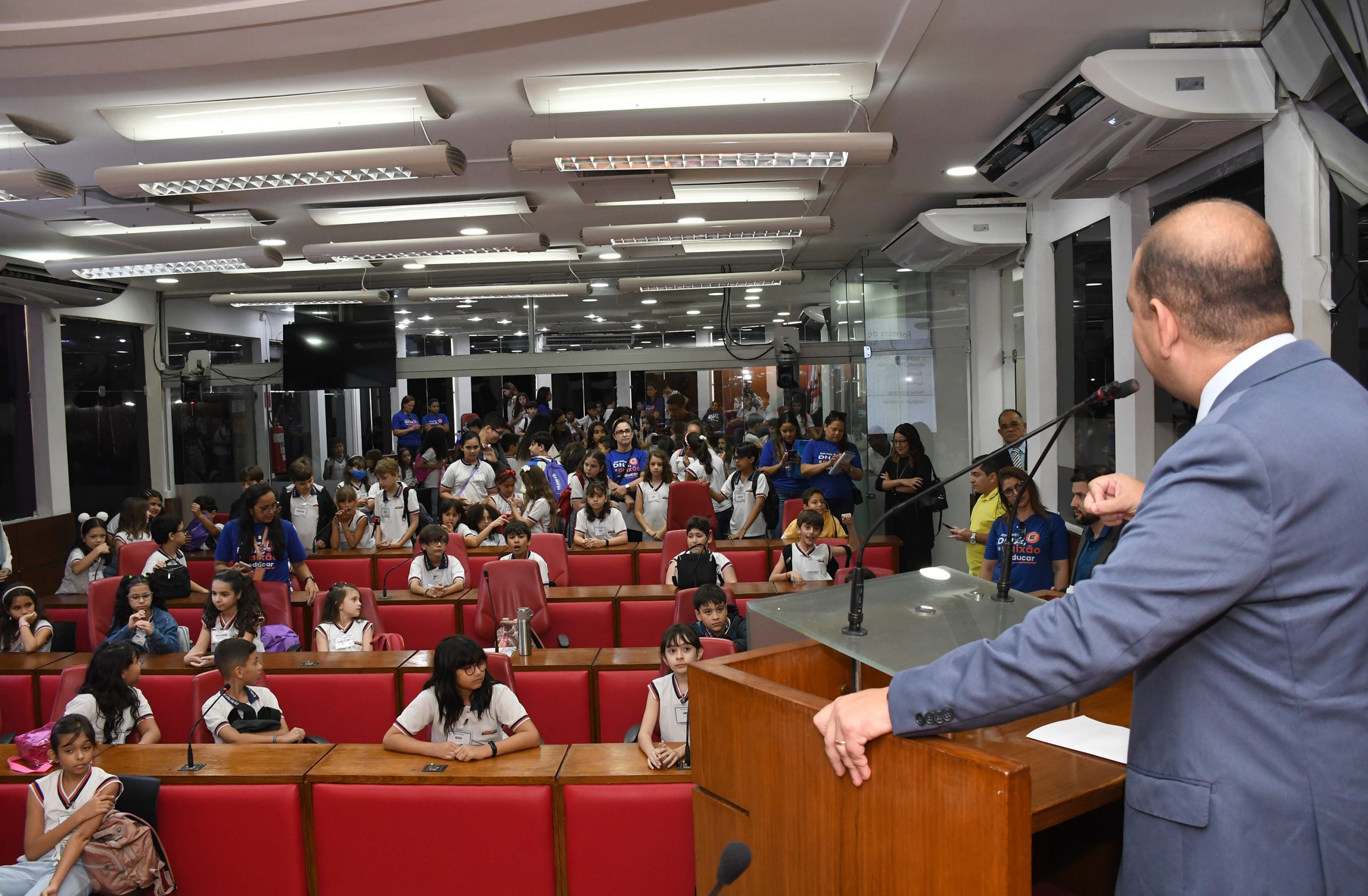 Quase cem alunos do 4º ano do Colégio Evolução encheram o plenário e as galerias da Câmara Municipal de João Pessoa (CMJP) e aprenderam um pouco mais sobre o Legislativo Municipal na manhã desta quarta-feira (23). O colégio participou do Projeto Escola na Câmara, desenvolvido pela CMJP por meio da Escola do Legislativo Professor Celso Furtado em parceria com o Centro Cultural da Casa.