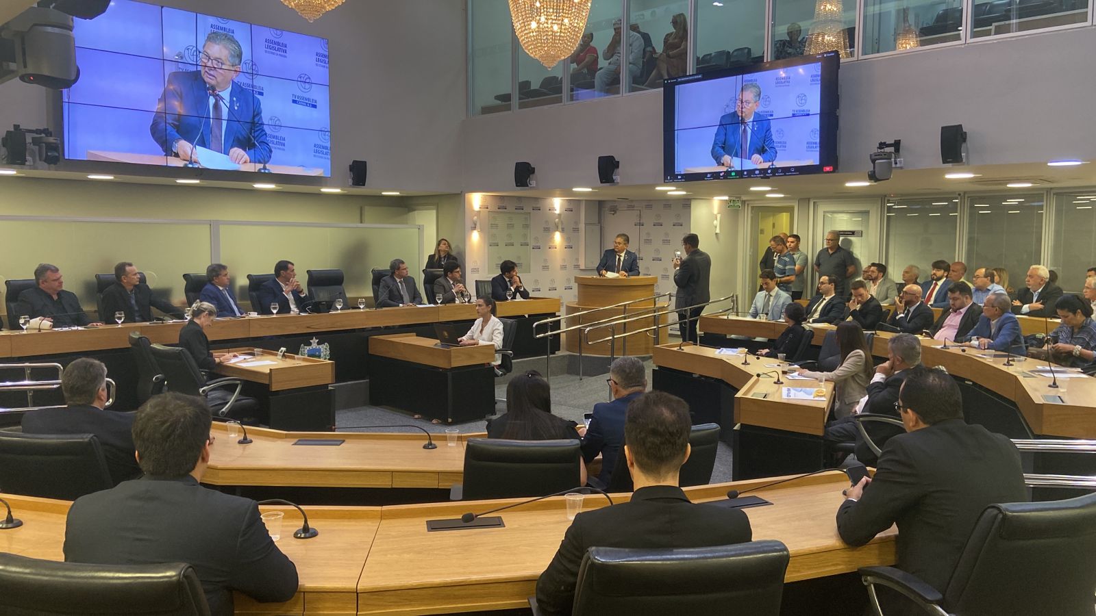 O secretário-executivo da Fazenda, Bruno Frade, avaliou o texto da reforma como positivo, mas ressaltou que alguns itens ainda precisam ser alterados, com o intuito de fortalecer os estados. “É uma reforma tributária que vem não pra desonerar, mas ela vem no mínimo pra desburocratizar o processo, tornar ele mais transparente, para que o cidadão possa efetivamente saber quanto tá recolhendo aos cofres públicos em cada operação comercial. O texto é bom, é importante e avança. Mas, a gente tem alguns pontos que ainda ferem a autonomia dos estados, que a gente tem tentado discutir com os senadores e hoje foi mais uma oportunidade de debater aqui na Assembleia”, disse o secretário.