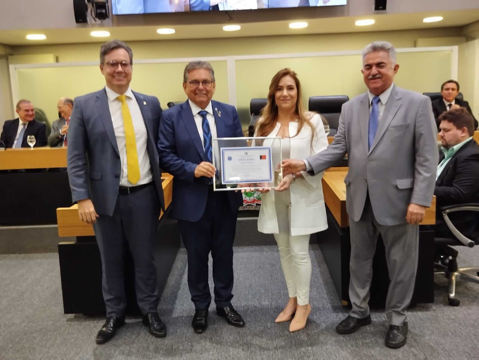 A Assembleia Legislativa da Paraíba (ALPB) realizou sessão solene, na tarde desta terça-feira (19), no plenário “Deputado José Mariz”, para outorga do título de Cidadania Paraibana à juíza Ivanoska Maria Esperia Gomes dos Santos, pelos relevantes serviços prestados ao estado. O evento proposto pelo presidente da ALPB, deputado Adriano Galdino, reuniu gestores públicos, membros da magistratura paraibana e familiares da homenageada.
