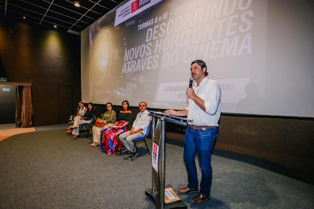 “Eu quero que vocês sigam essa carreira, fazer cinema, teatro. É por isso que eu estou aqui, como gestor, ao lado do prefeito Cícero Lucena. Não é uma simples entrega de certificados, é uma ação para mostrar que a Prefeita tura de João Pessoa está ao lado de vocês, dando esse suporte, dando essa abertura”, disse o vice-prefeito Leo Bezerra.