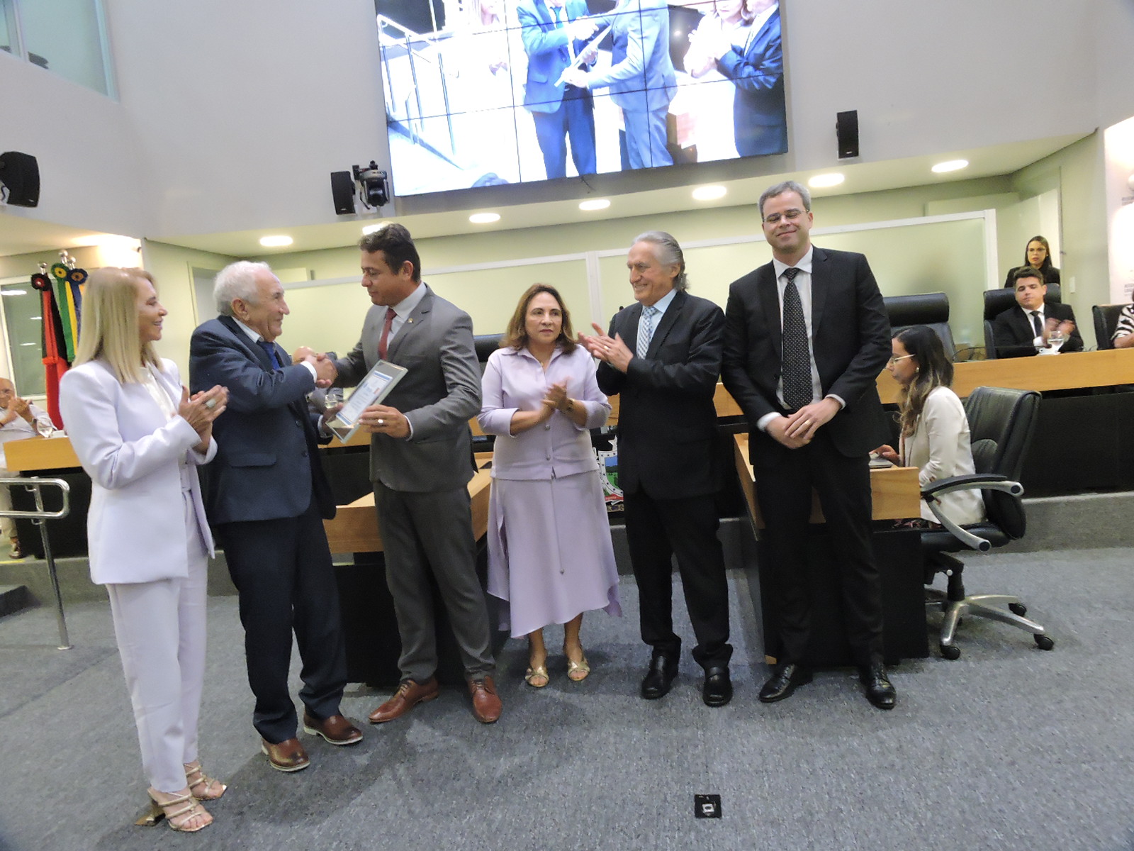 A Assembleia Legislativa da Paraíba (ALPB) realizou sessão solene, na tarde desta quarta-feira (27), no plenário “Deputado José Mariz”, para outorga do título de cidadão paraibano e “Medalha Epitácio Pessoa” ao empresário Alírio Trindade Leite; e a “Medalha Epitácio Pessoa” ao também empresário Edalmo Leite Fernandes de Assis pelos relevantes serviços prestados ao estado. As homenagens foram propostas pelo deputado Wallber Virgolino.