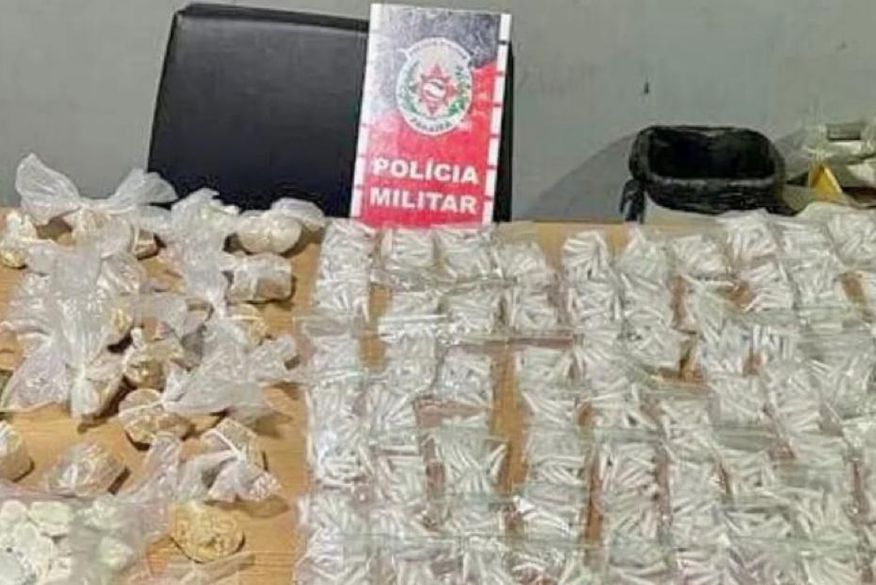 Os itens apreendidos incluíam 1.800 pinos de cocaína, três tabletes de maconha e vinte porções de crack. Além das drogas, foram encontradas duas balanças de precisão e materiais usados para embalar os entorpecentes.