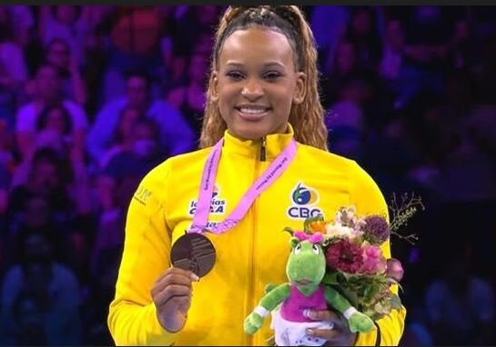 Rebeca Andrade mal celebrou a prata conquistada no individual geral na sexta e retornou ao pódio na manhã deste sábado, mas desta vez no lugar mais alto, na Antuérpia. O ouro veio na final do salto, mais uma vez com a presença de Simone Biles.