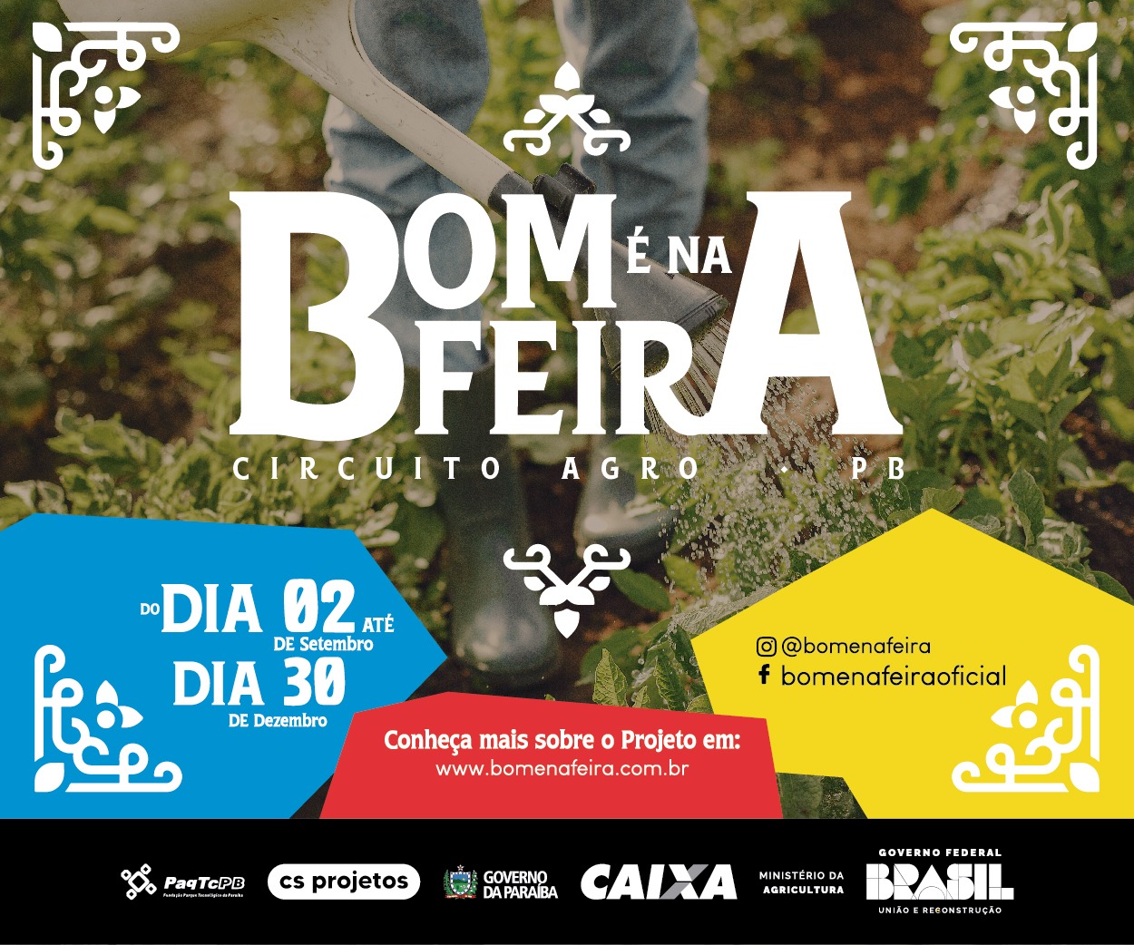 O Bom é na Feira: circuito agro é uma realização da Fundação Parque Tecnológico da Paraíba, CS projetos e Governo da Paraíba, com patrocínio Caixa, Ministério da Agricultura e Governo Federal Brasil União e reconstrução. As ações do projeto podem ser acompanhadas pelas redes sociais: @bomenafeira, no Facebook, Instagram e no site: www.bomenafeira.com.br
