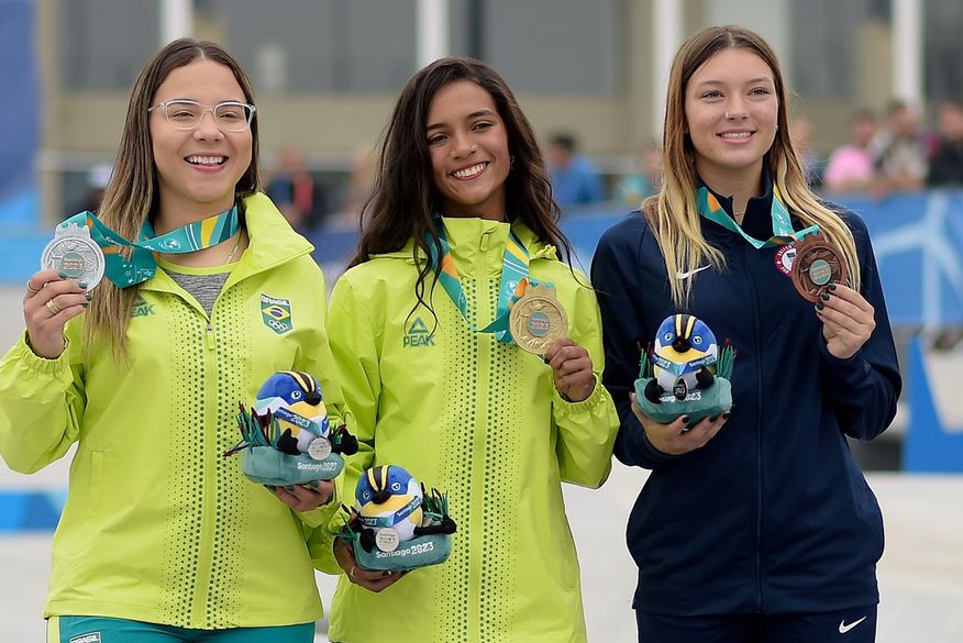 O Brasil conquistou na manhã deste sábado (21) as suas primeiras medalhas nos Jogos Pan-americanos de Santiago (Chile). O destaque foi o ouro de Rayssa Leal no skate street, prova disputada na Explanada de Deportes Urbanos, no Estádio Nacional de Santiago, e na qual Pâmela Rosa ficou com a Prata.