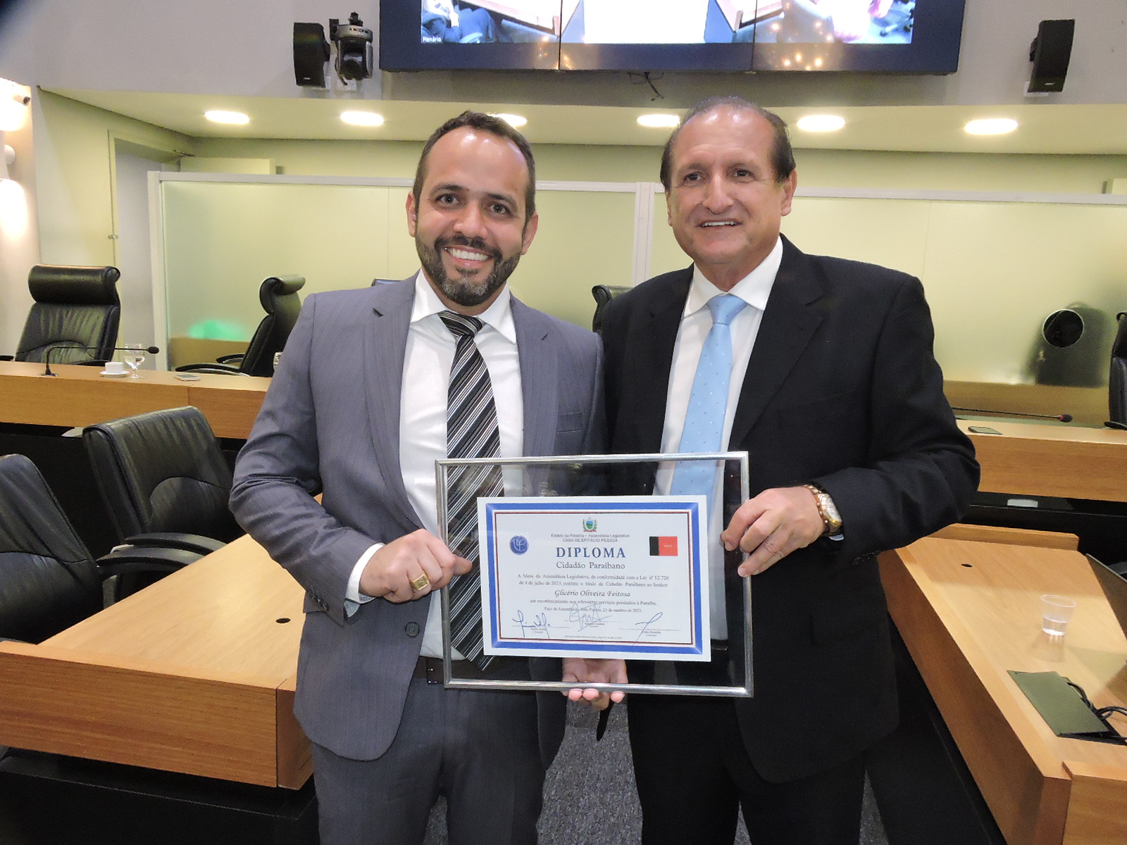 “Glicério você tenha a certeza que a Assembleia concede esse título de cidadania por mérito seu, pelo amor, pelo carinho que você tem por nosso estado. Tenho certeza que seus pais sentem-se orgulhosos de você. Você vem de uma família batalhadora. São essas as razões da homenagem e esperamos que, como paraibano agora, você possa contribuir ainda mais para o nosso progresso. É um enorme prazer para esta Casa”, disse Hervázio.