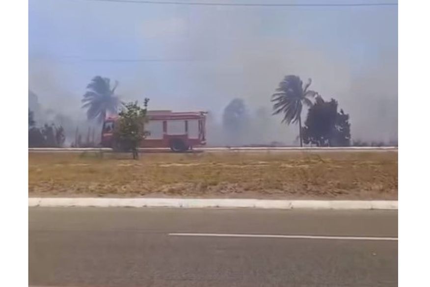 Um incêndio vem mobilizando o Corpo de Bombeiros às margens da PB-008, em João Pessoa, durante a manhã e início de tarde deste domingo (12). O fogo, que estaria descontrolado, consumiu parte da vegetação que margeia a rodovia.