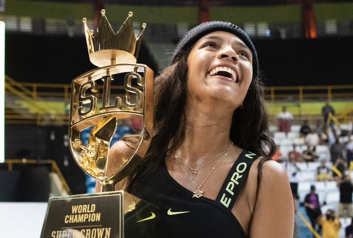 Rayssa Leal conquistou, neste domingo (3), o bicampeonato do Super Crown da Street League de Skate (SLS). O título veio após a ‘fadinha’ conseguir uma nota 9 na competição, sendo a primeira mulher a receber essa pontuação na história da SLS. Tudo isso com apenas 15 anos.