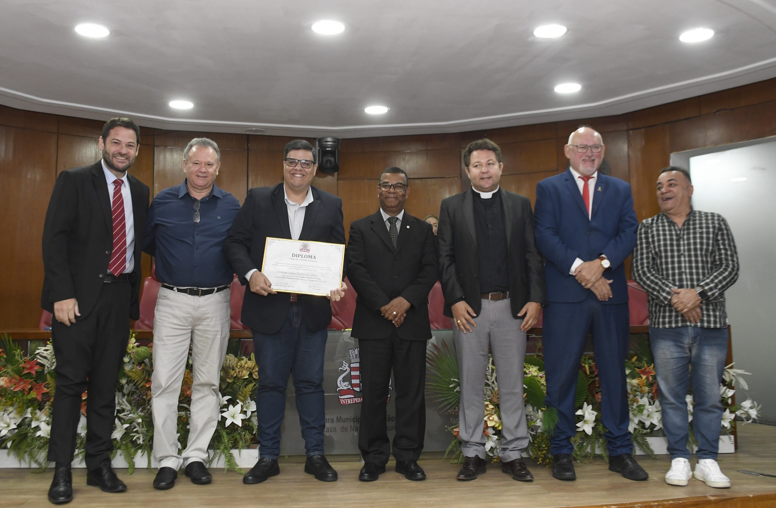O presidente municipal do Podemos, José Gadelha, parabenizou o homenageado e o definiu como um comunicador nato, que cresceu como profissional e hoje é um dos comunicadores mais importantes do Estado. “Trouxe meu abraço, meu reconhecimento. Para mim, é uma alegria muito grande participar desta justa homenagem. João Pessoa tem em você um microfone aberto para as cobranças às autoridades. Cobranças que você faz com maestria”, enfatizou, parabenizando ainda o vereador Bispo José Luiz pela propositura e a Capital, pelo mais novo cidadão.