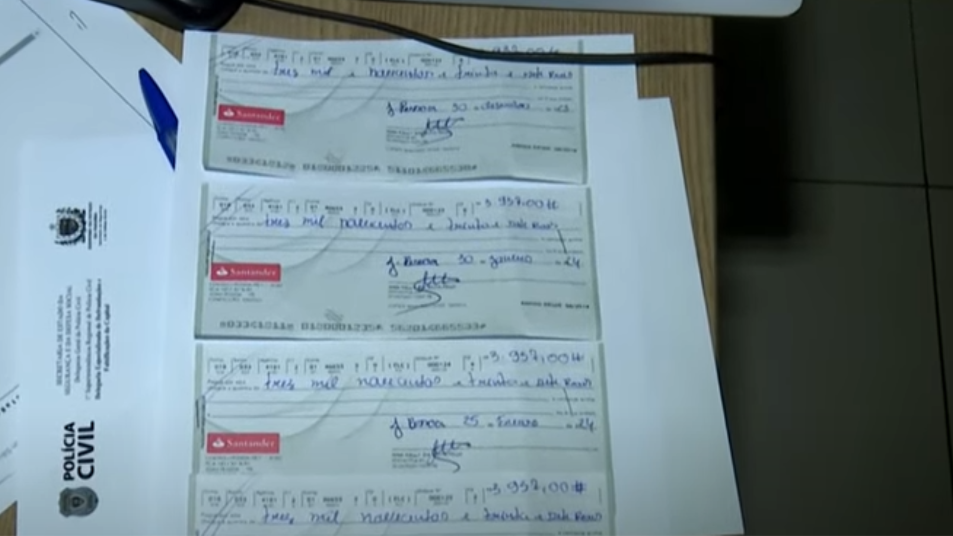Os cheques e os materiais foram apreendidos. As suspeitas foram encaminhadas para a Delegacia de Polícia para os procedimentos cabíveis.