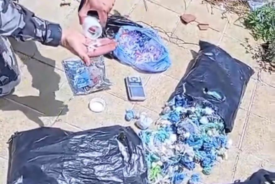 Apesar do cerco policial, um suspeito conseguiu escapar. No entanto, a Polícia Militar foi capaz de apreender três sacolas cheias de várias drogas, incluindo cocaína, maconha e crack. Uma balança de precisão também foi encontrada no local.
