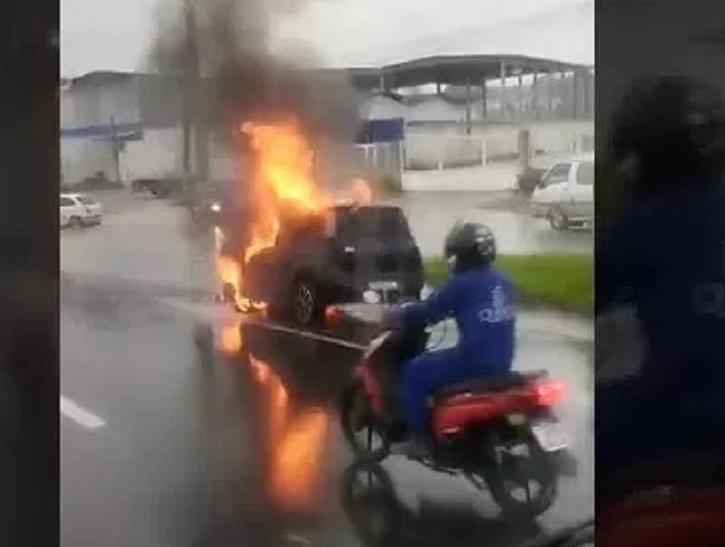 Um carro de passeio pegou fogo na manhã desta quinta-feira (11) em um trecho da BR-230, na altura de Bayeux, na Região Metropolitana de João Pessoa. O fato ocorreu nas proximidades do antigo posto da Polícia Rodoviária Federal (PRF) e de uma concessionária de veículos.
