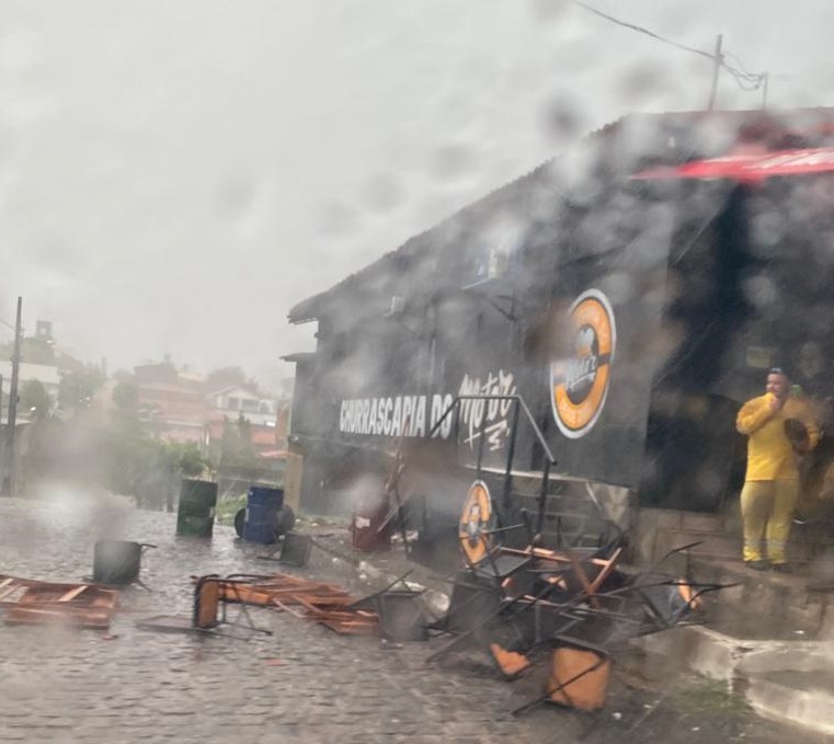 A chuva também danificou uma torre com antenas de telecomunicações e telhado de residências e estabelecimentos comerciais.