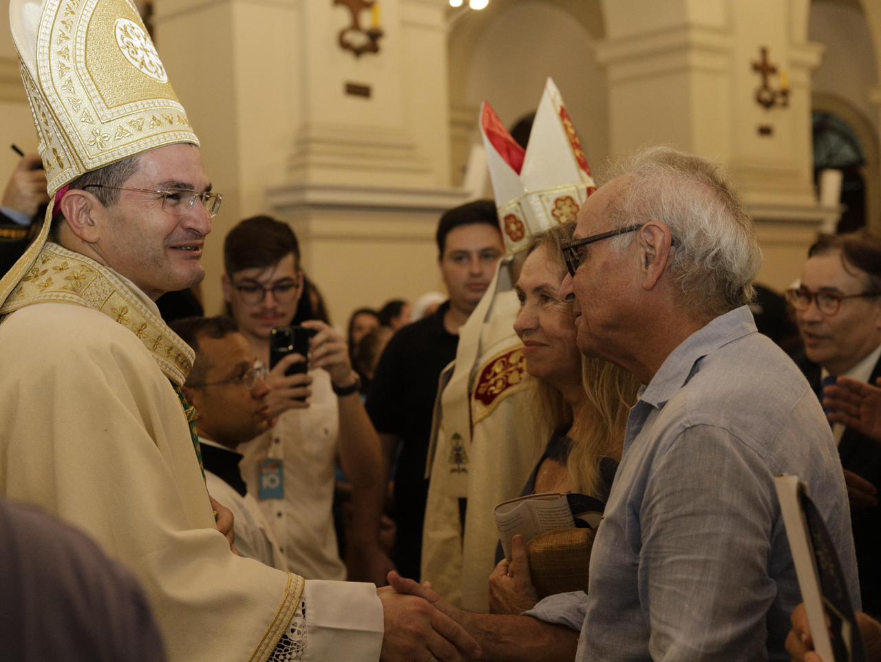 O prefeito Cícero Lucena deu boas-vindas a Dom Alcivan Tadeus que, na noite desta quinta-feira (22), foi apresentado como novo bispo auxiliar da Paraíba. Durante celebração eucarística na Catedral Basílica de Nossa Senhora das Neves, no Centro Histórico da Capital, o gestor também desejou que o religioso, que será um colaborador próximo de Dom Manoel Delson, arcebispo metropolitano da Paraíba, na condução dos assuntos da Arquidiocese, cumpra sua missão de paz junto aos fiéis da Capital.