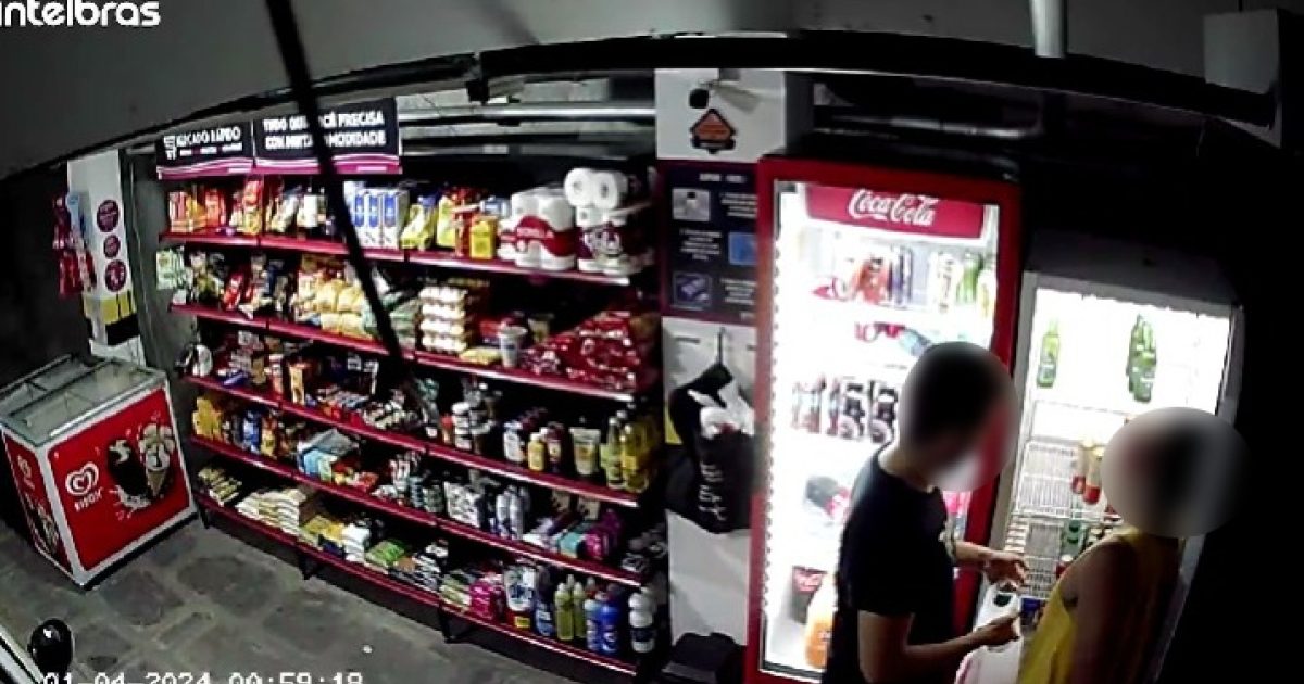 Segundo informações, os suspeitos, que são um casal, pegaram vários produtos do estabelecimento, incluindo bebidas sem pagar.