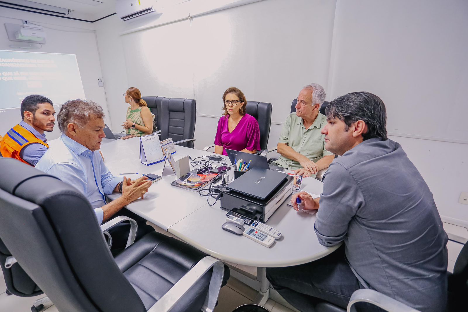 Uma reunião estratégica para o fortalecimento da gestão de riscos e a segurança da população de João Pessoa. Essa foi a pauta da reunião conduzida pelo prefeito em exercício, Leo Bezerra, na manhã desta terça-feira (02) no Centro Administrativo Municipal (CAM), em Água Fria. No encontro, que teve a participação da equipe da Unidade Executora do Programa João Pessoa Sustentável e da Coordenadoria Municipal de Proteção e Defesa Civil (Compdec-JP), foi apresentado o diagnóstico de riscos da cidade, que traz medidas já implementadas e novas ações para fortalecer a gestão nessas áreas.