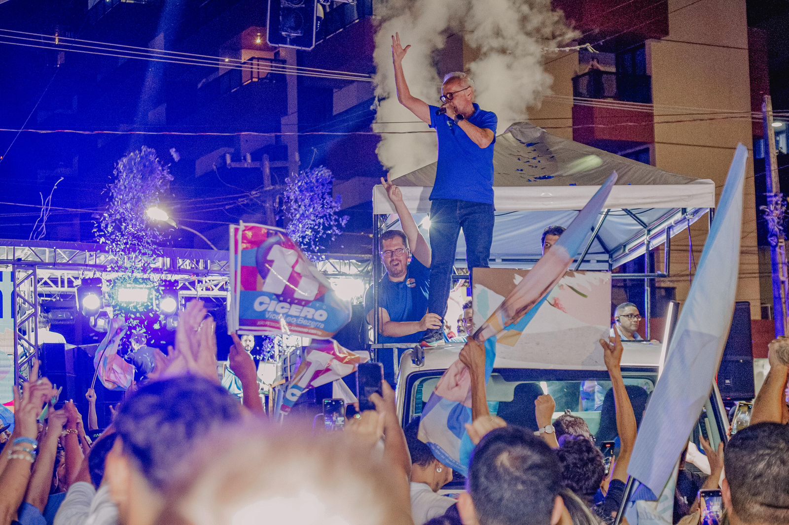 O prefeito Cícero Lucena, candidato à reeleição, celebrou a vitória no primeiro turno das eleições, neste domingo (6), quando obteve 205.122 votos, representando sua maior votação na história dos pleitos na capital. Ao lado do governador João Azevêdo, da senadora Daniella Ribeiro, do vice Leo Bezerra, além dos deputados federais Aguinaldo Ribeiro e Mersinho Lucena, o gestor agradeceu o resultado expressivo, mais de 114 mil votos a frente do segundo colocado, e disse que, no segundo turno, será oportunidade de dialogar mais com o eleitorado no sentido de detalhar as propostas do seu governo para um segundo mandato.