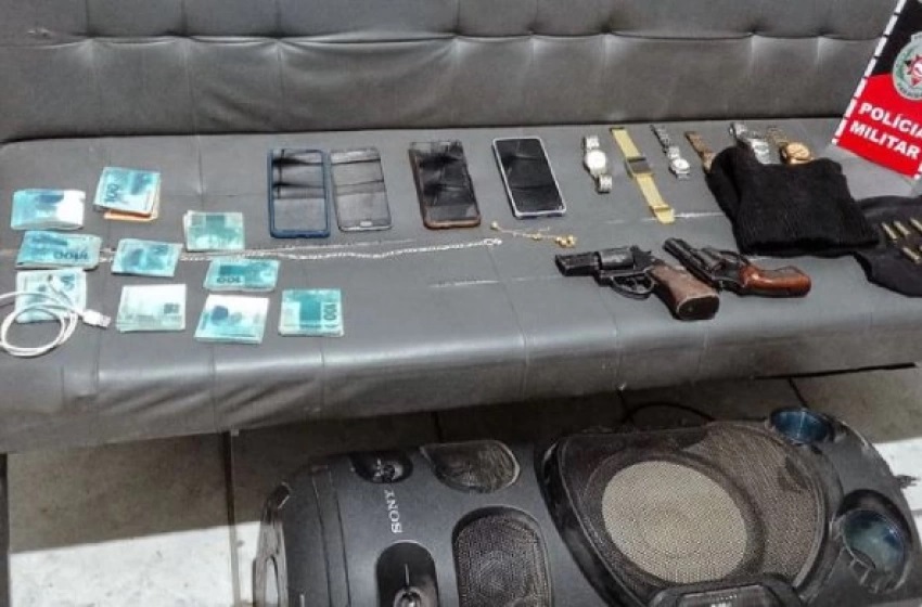 A PM também recuperou com o grupo dinheiro, relógios e uma caixa de som, materiais que haviam sido levados das vítimas, mas que foram recuperados (foto acima).