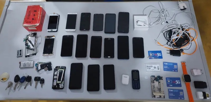 No imóvel, a polícia conseguiu apreender outros dois adolescentes, também suspeitos de crimes e apreendeu vários celulares que tinham sido furtados do estabelecimento arrombado.